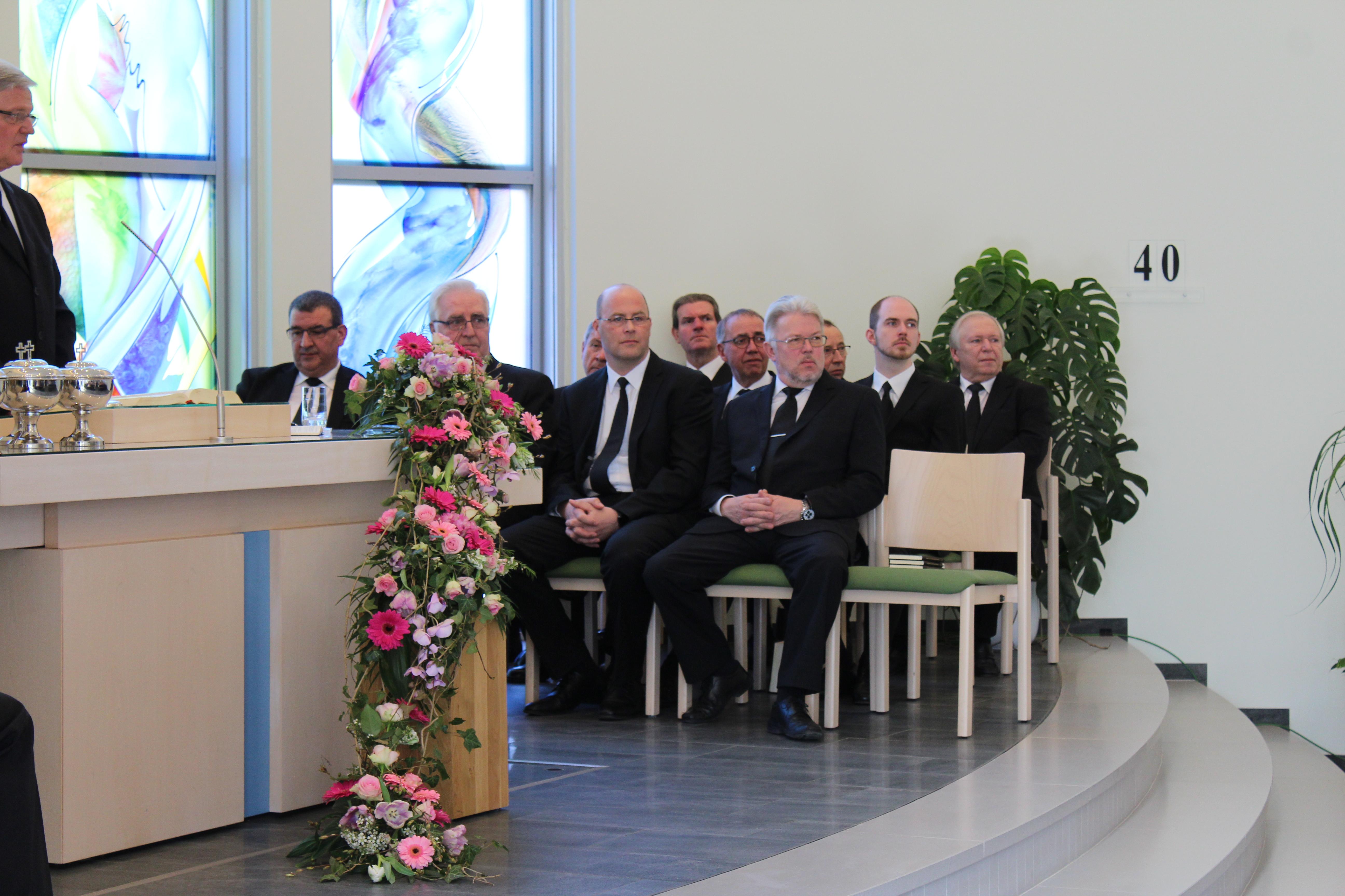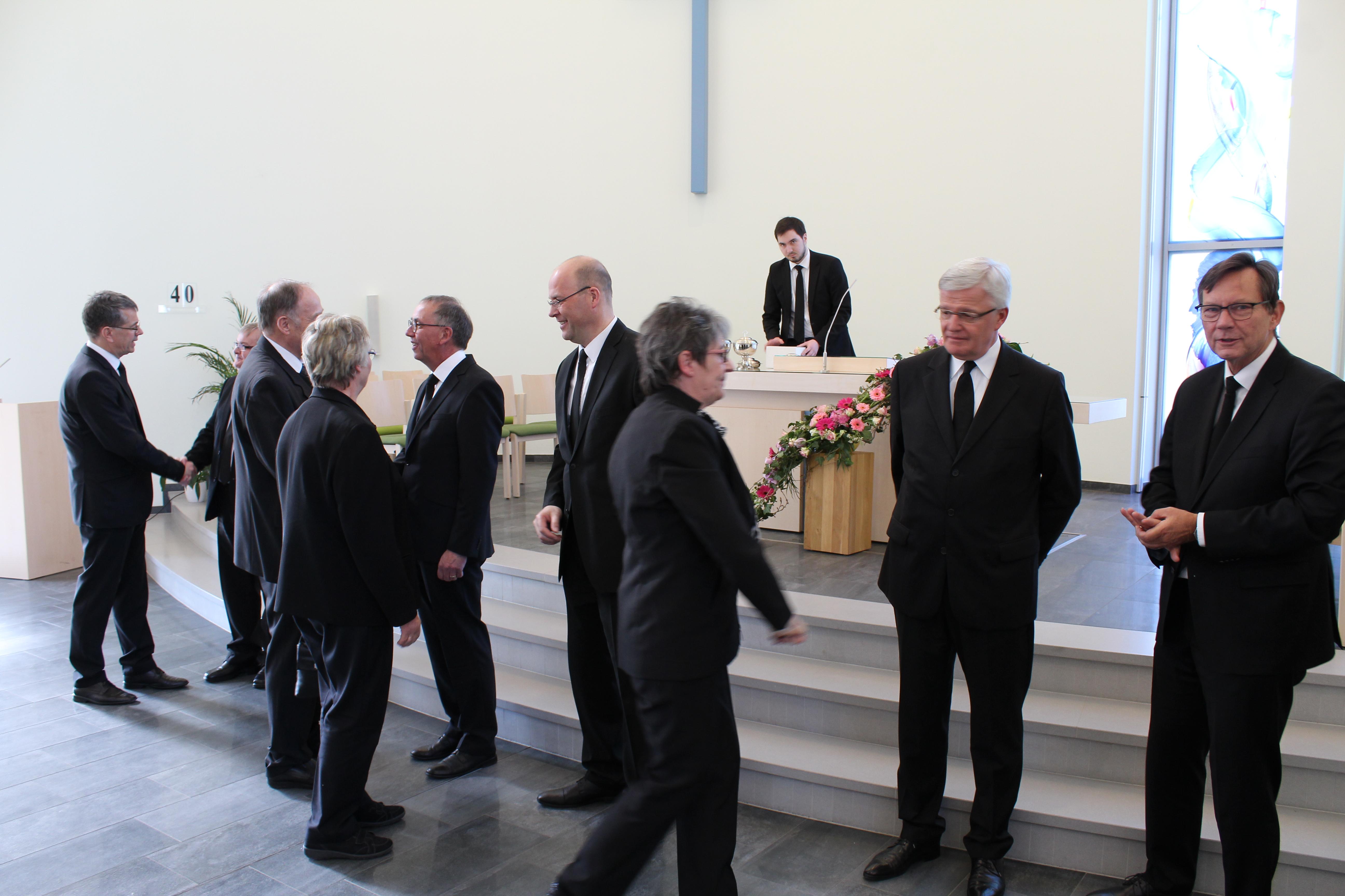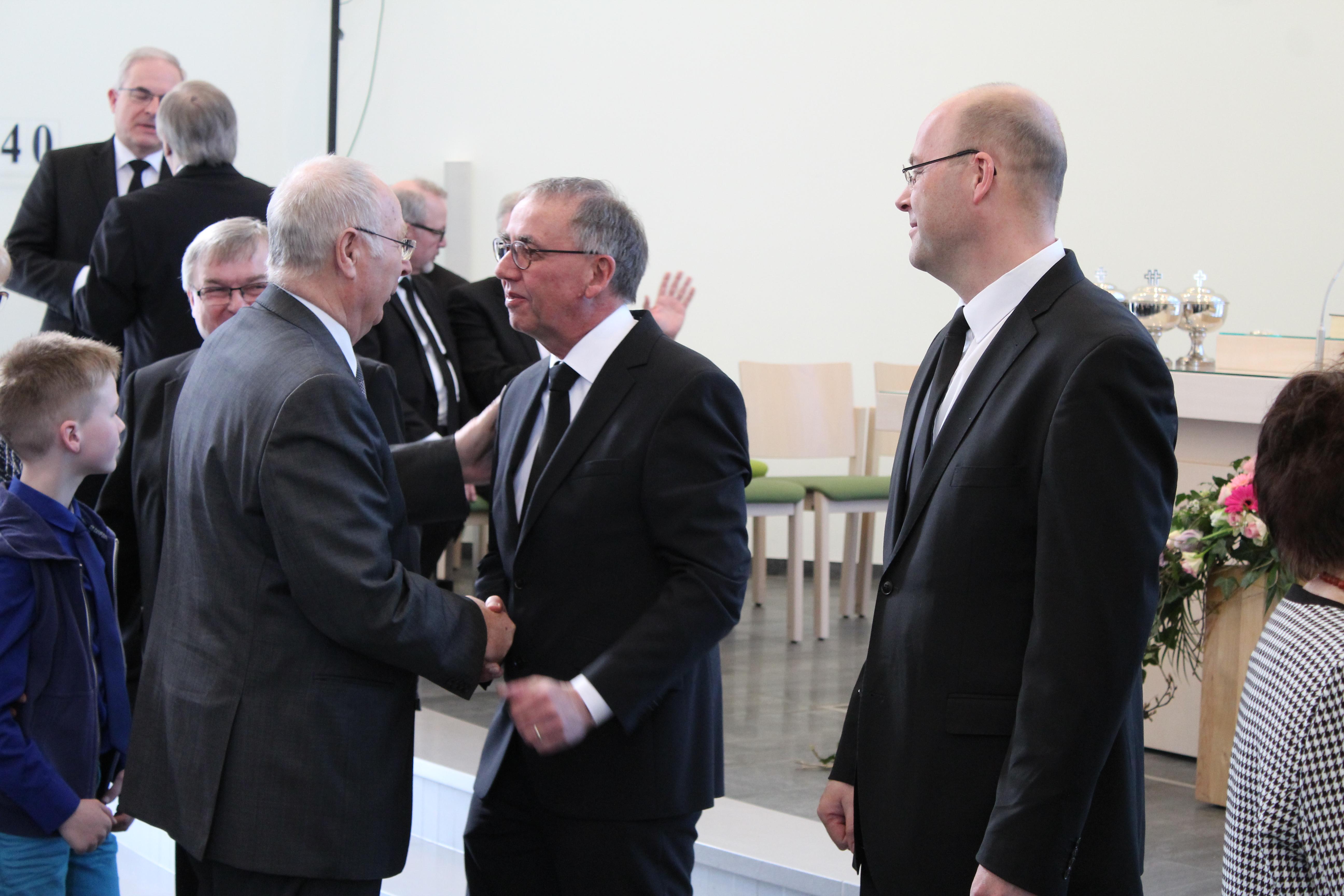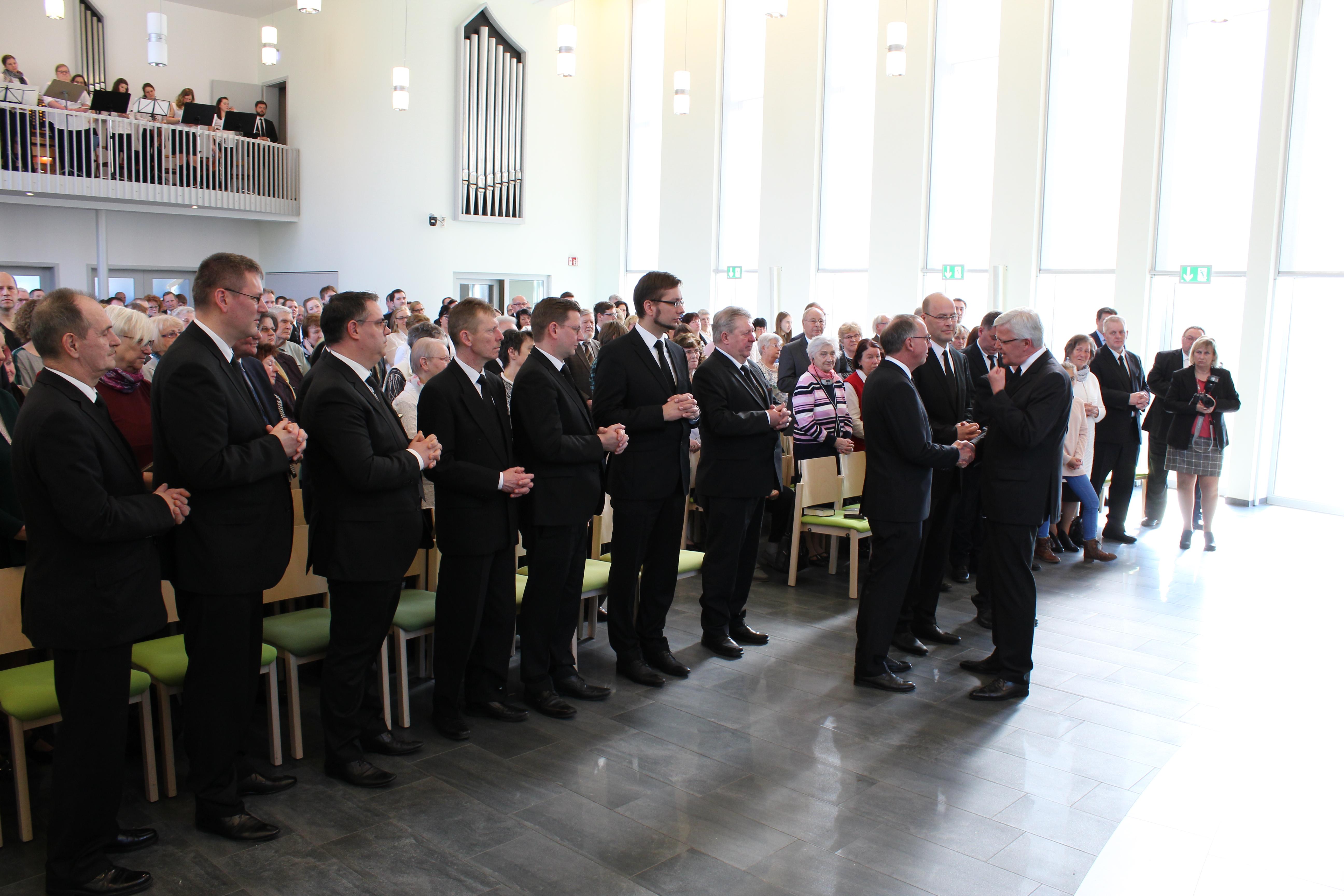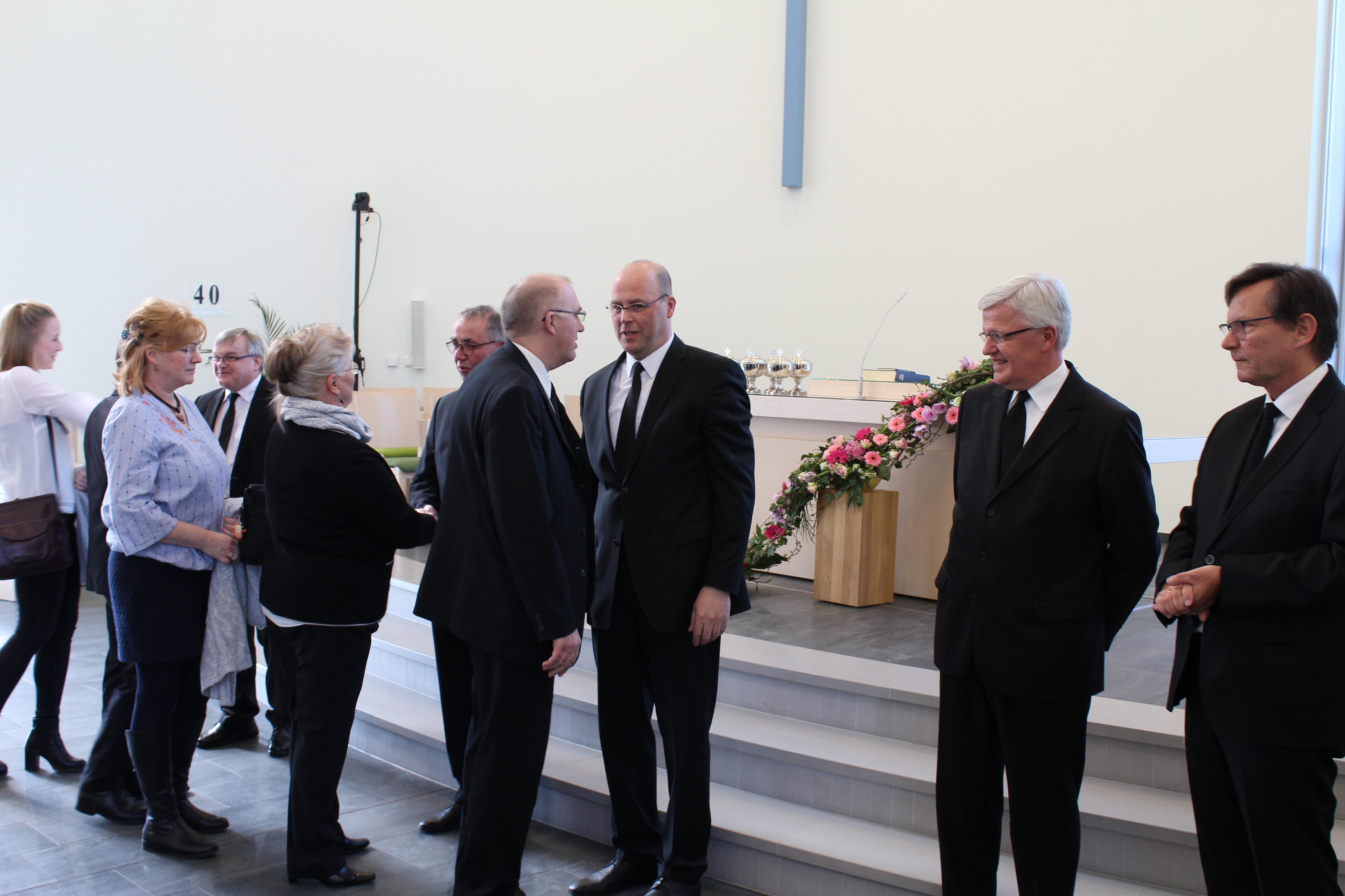 Nach Beendigung des Gottesdienstes gab es reichlich Gelegenheit, mit den neu beauftragten Bezirksämtern, dem Bischof, Apostel oder Bezirksapostel ein paar Worte zu wechseln.