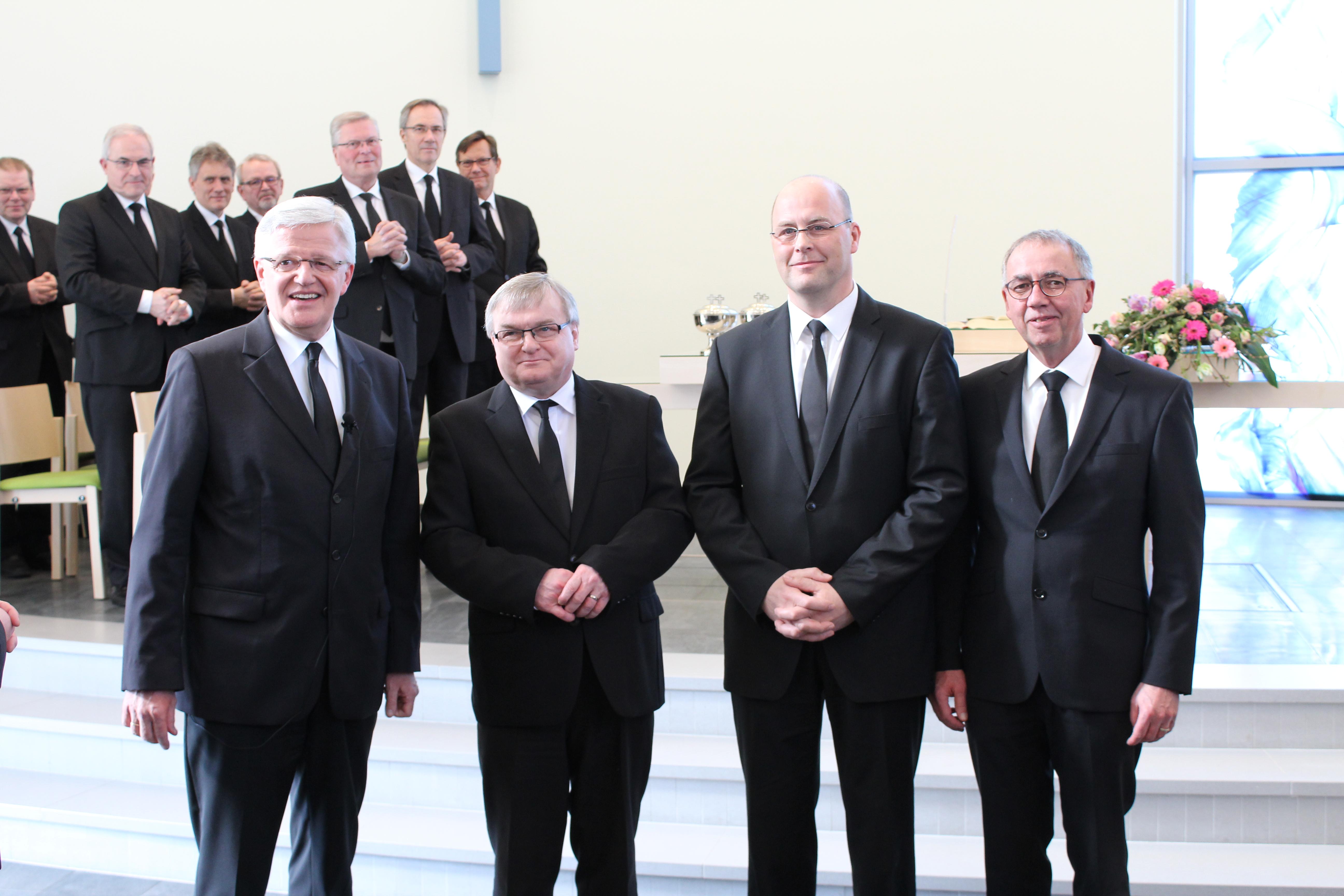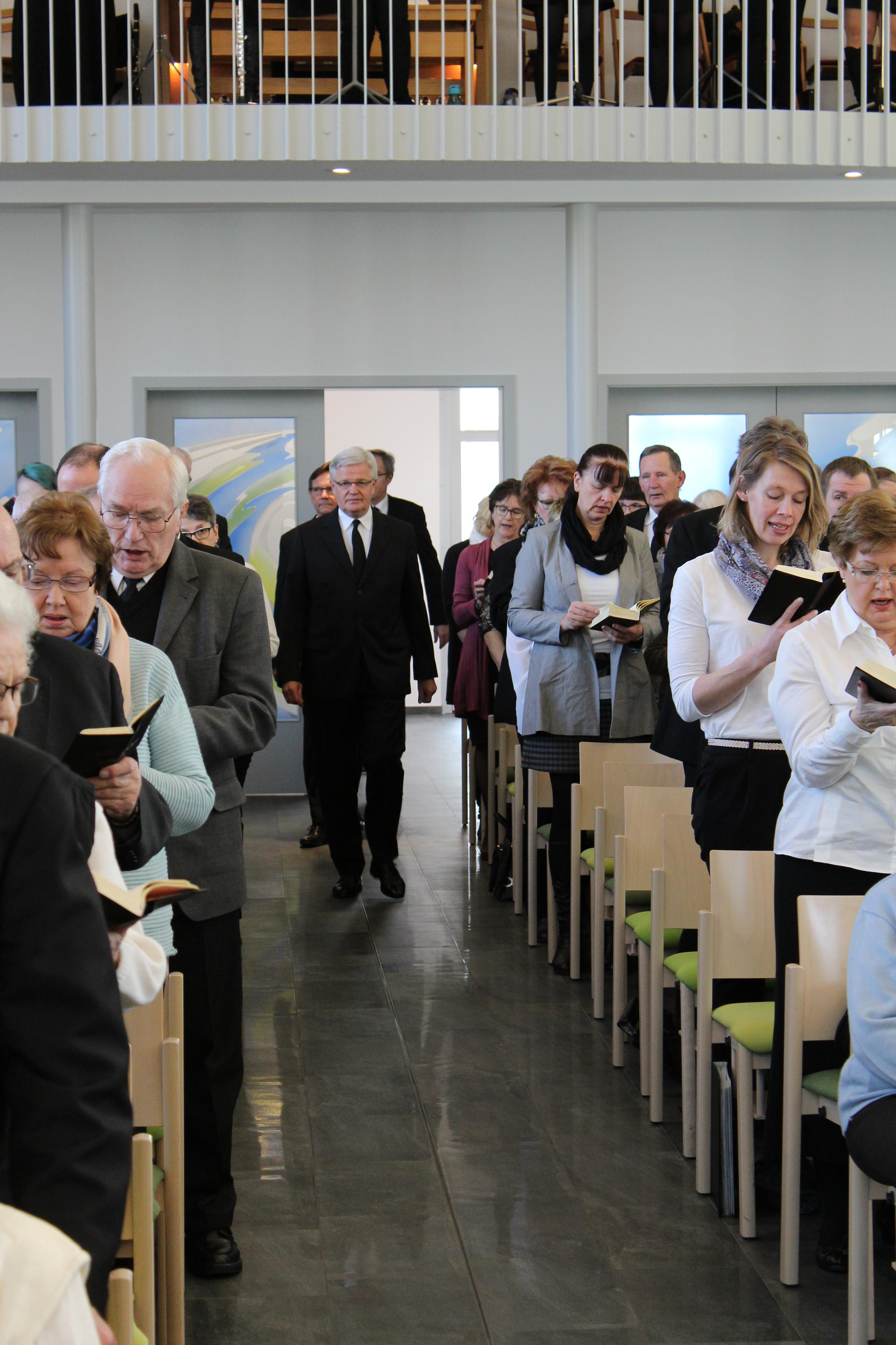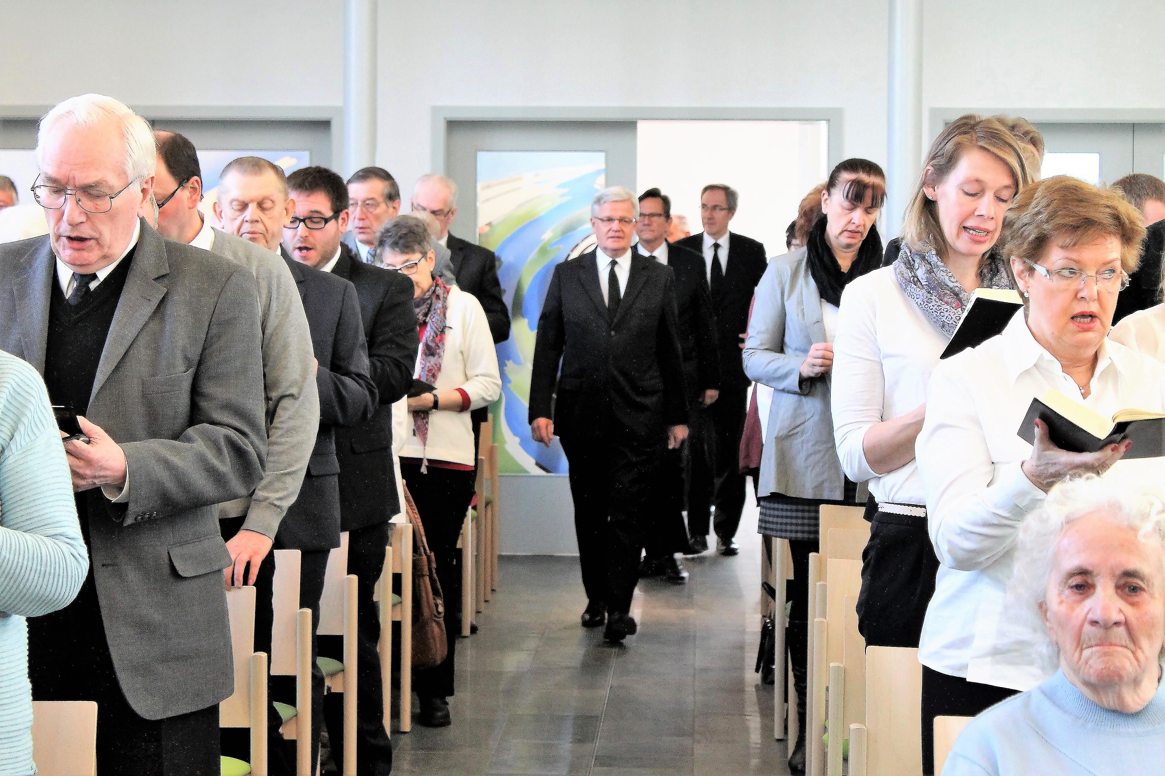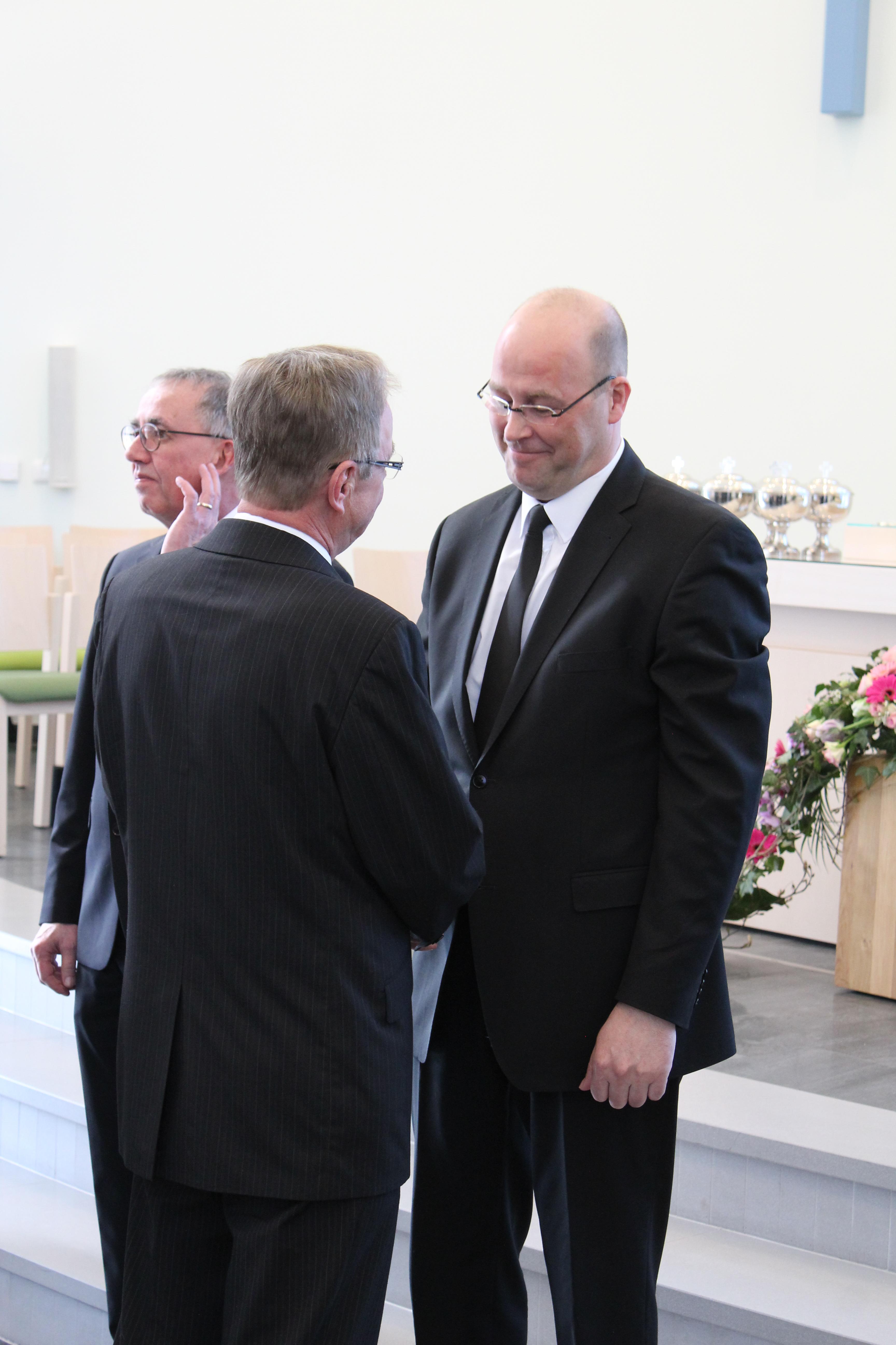 Nach Beendigung des Gottesdienstes gab es reichlich Gelegenheit, mit den neu beauftragten Bezirksämtern, dem Bischof, Apostel oder Bezirksapostel ein paar Worte zu wechseln.