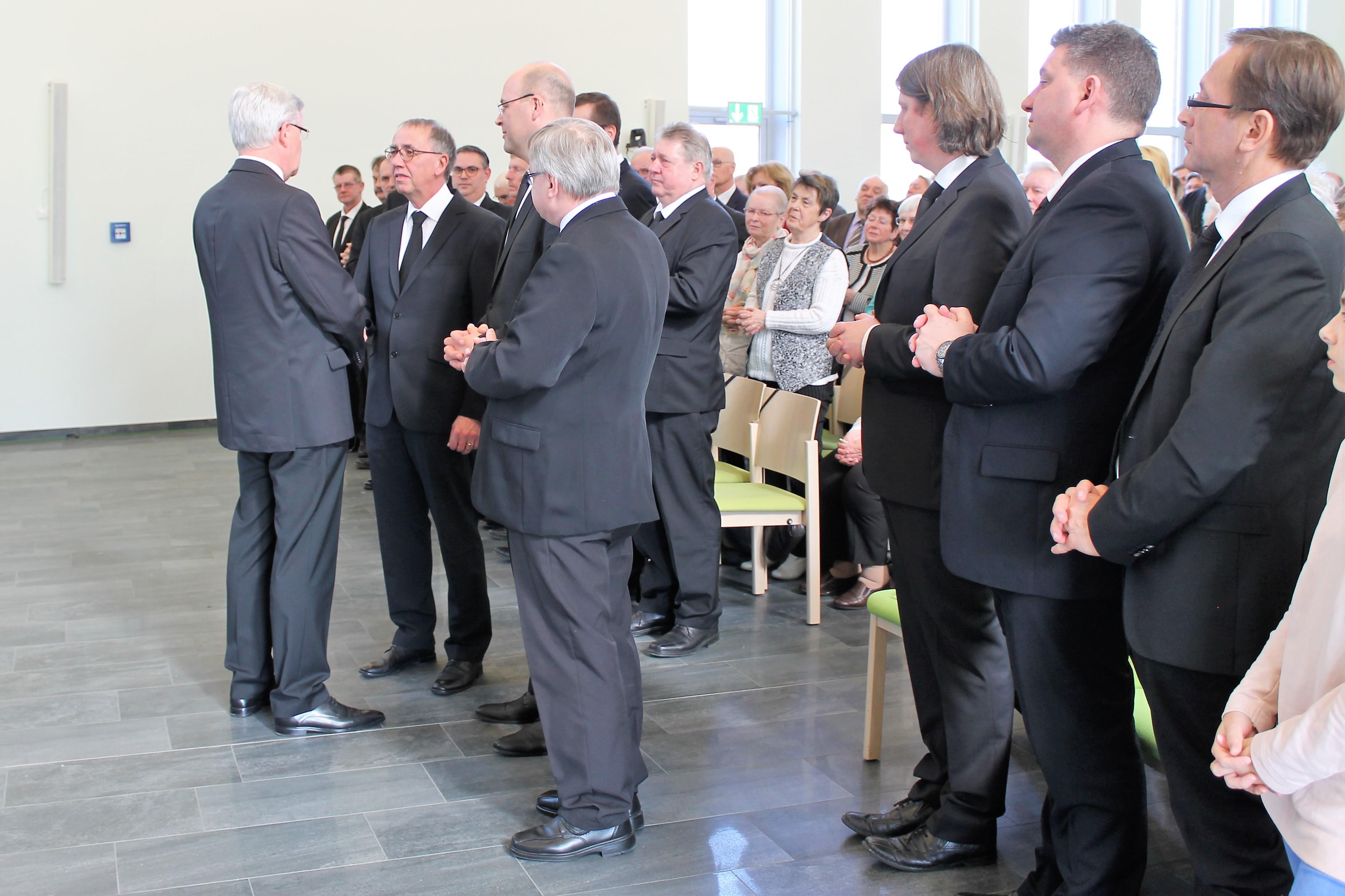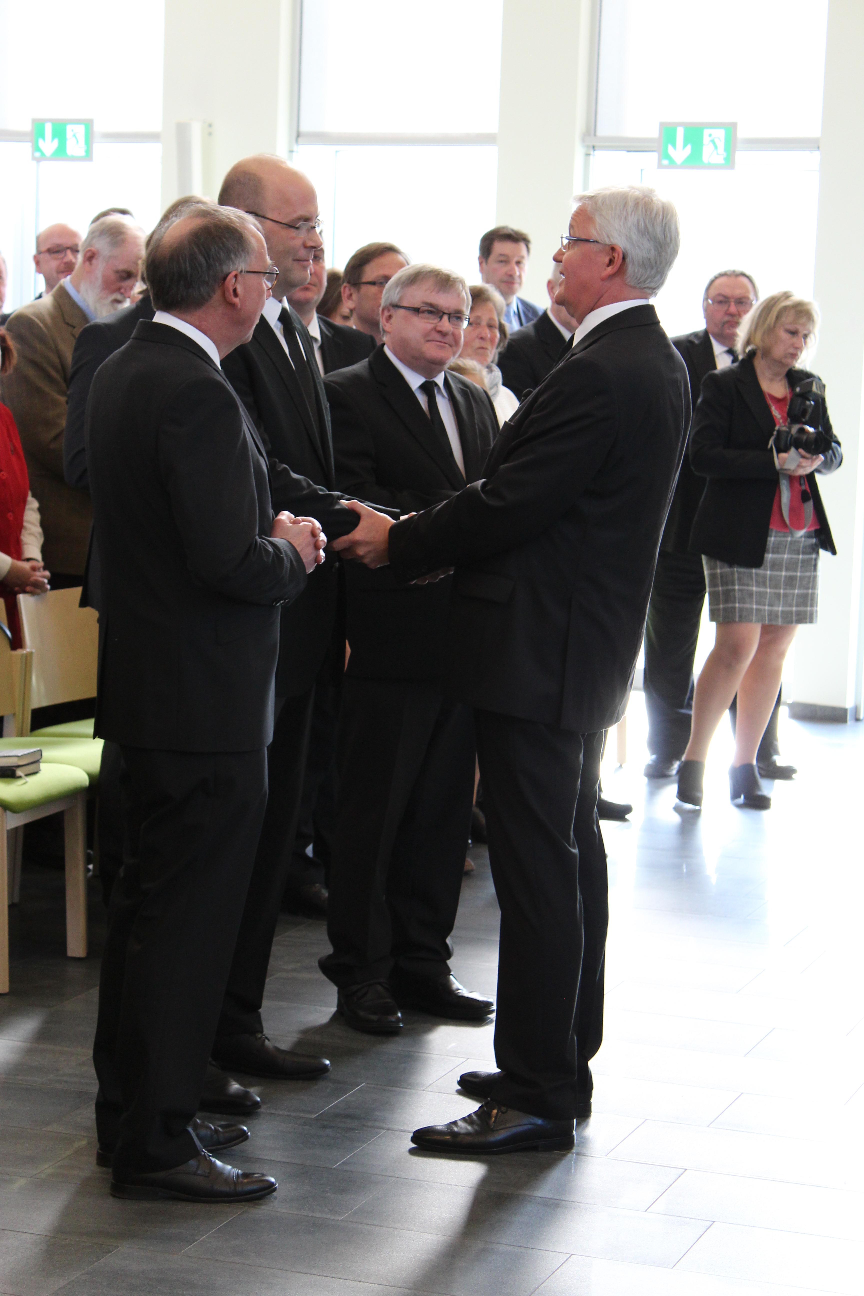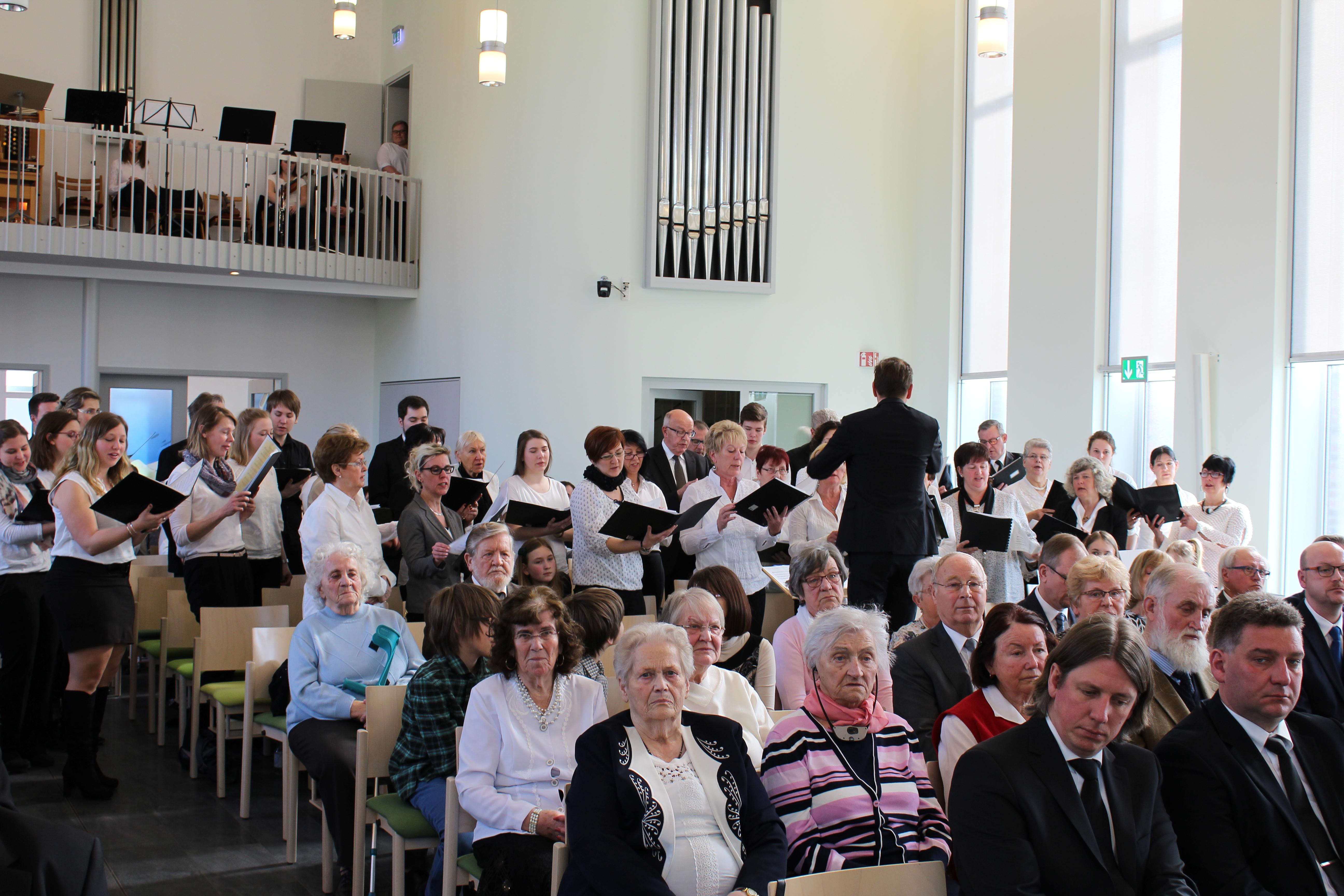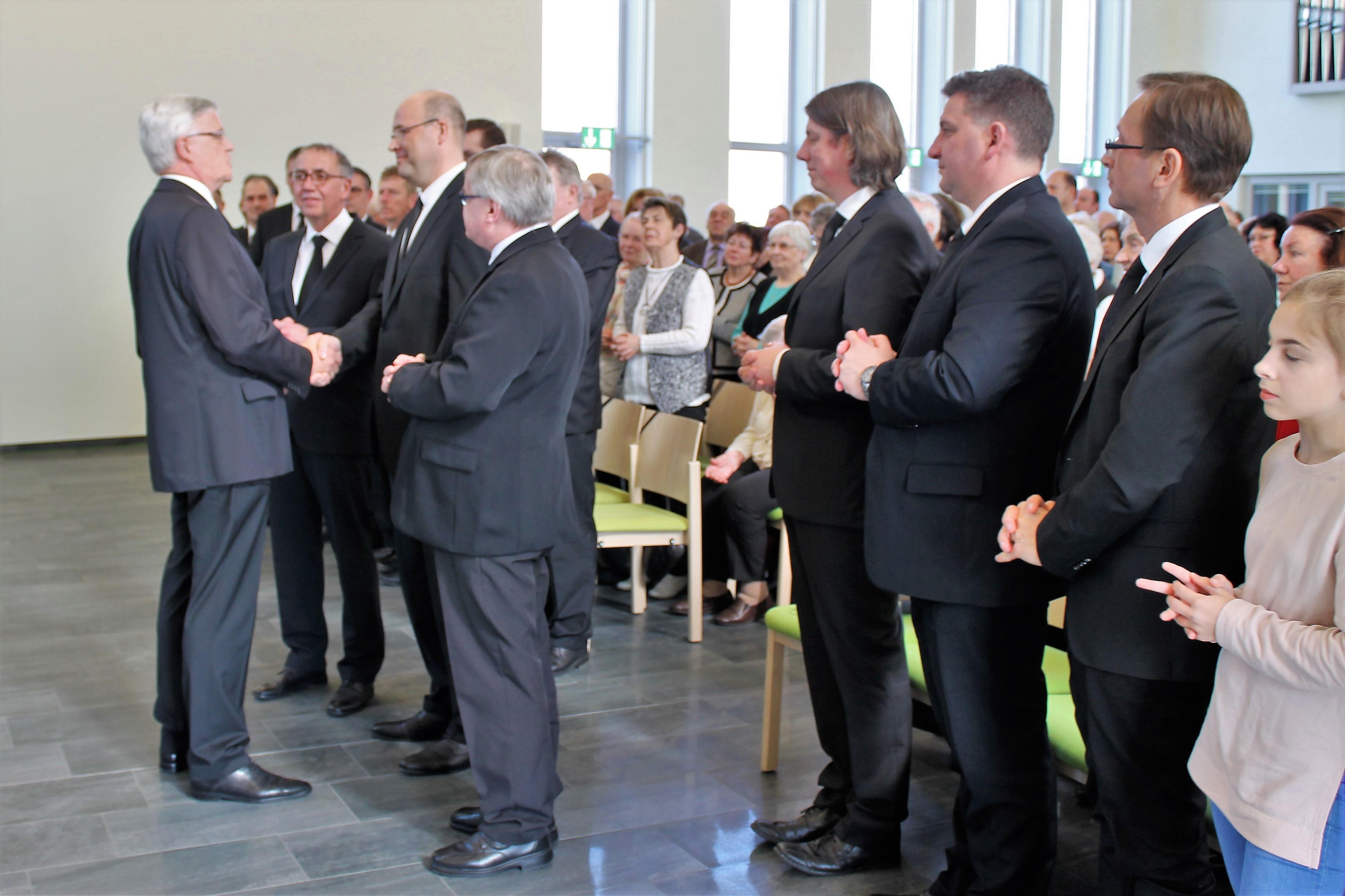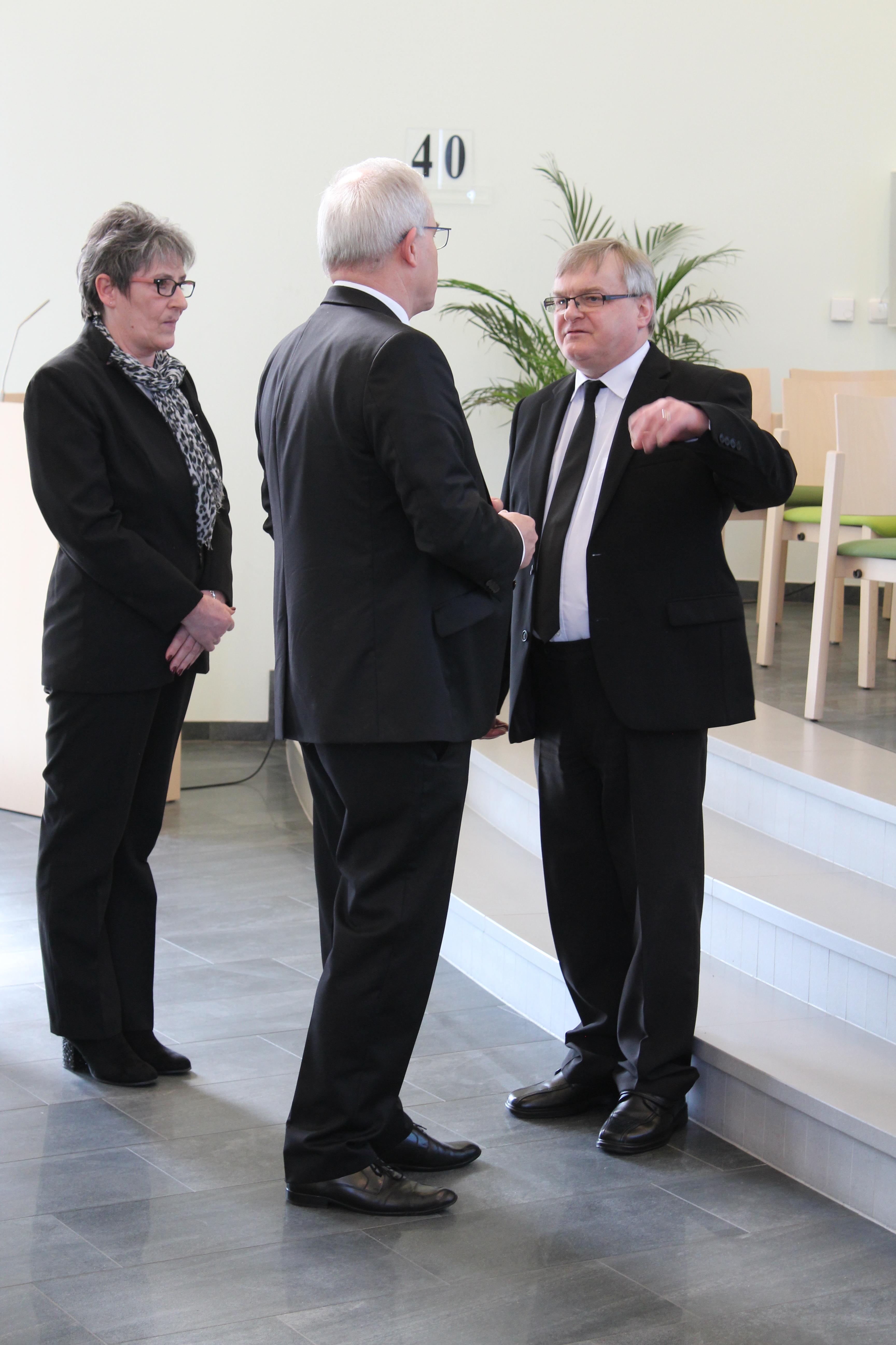 Nach Beendigung des Gottesdienstes gab es reichlich Gelegenheit, mit den neu beauftragten Bezirksämtern, dem Bischof, Apostel oder Bezirksapostel ein paar Worte zu wechseln.