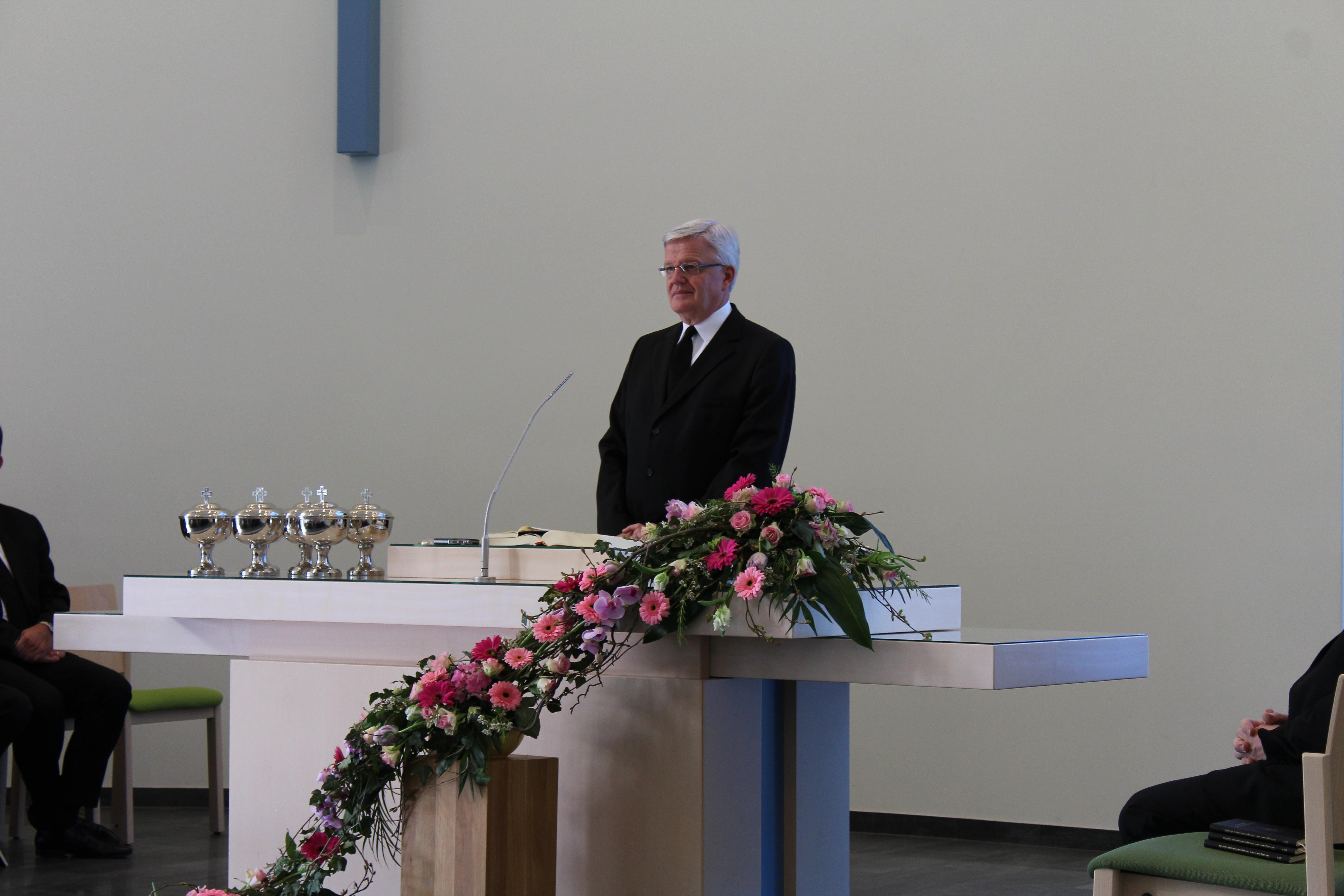 Bezirksapostel Krause diente mit dem Bibelwort aus Sacharja 9, Vers 9 wo geschrieben steht: